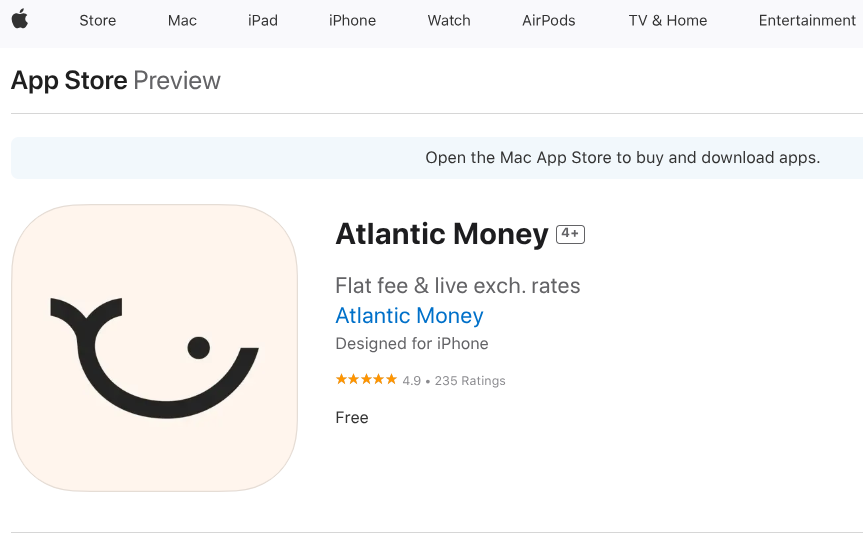 Atlantic Money is a new mobile-only money transfer app.