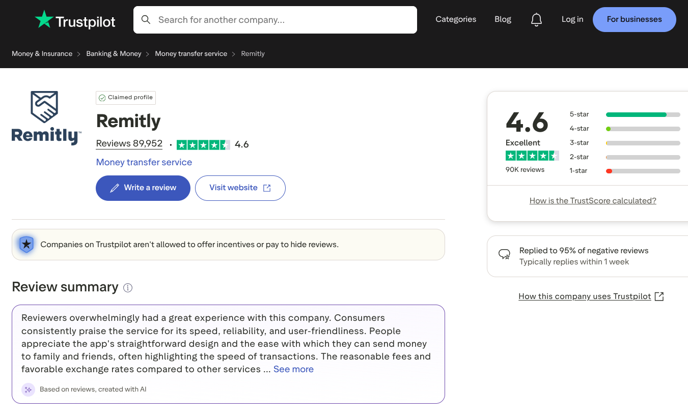 Overall, Remitly is a very trustworthy company, but it would be a good idea to keep an eye on their figures if you plan to use them long term.